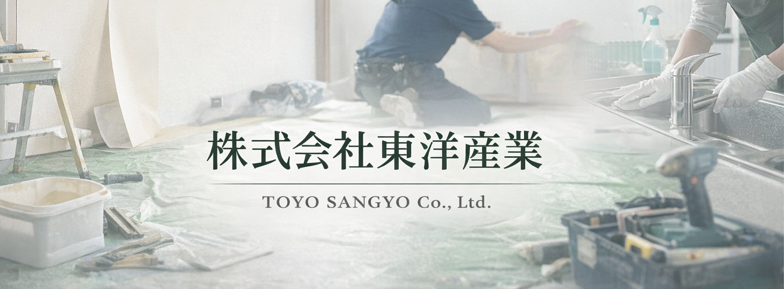 株式会社東洋産業は、原状回復工事・ハウスクリーニング等を中心に、不動産管理会社様・オーナー様向けの現場対応業務を行っている会社です。
